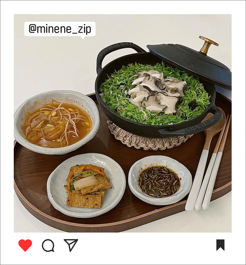 There is an old saying in Korea: "Chives are aromatic when you eat them in spring, but they smell bad when you eat them in summer." This means that chives are vegetables best enjoyed in spring. Spring chives and chewy conch shells, combined with pot rice, completes a mild, tasty dish.