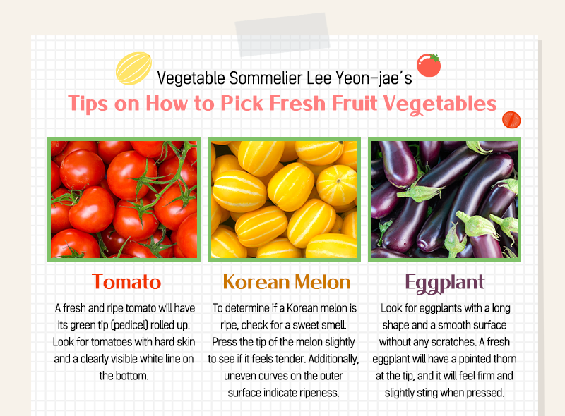 As a vegetable sommelier, Lee Yeon-jae provides people with information on how to select and store vegetables, how to cook them, and insights into the entire process, from production and distribution to the vegetables' journey to your dinner table. She showcased various fruit and vegetable varieties and taught us how to choose the best ones.