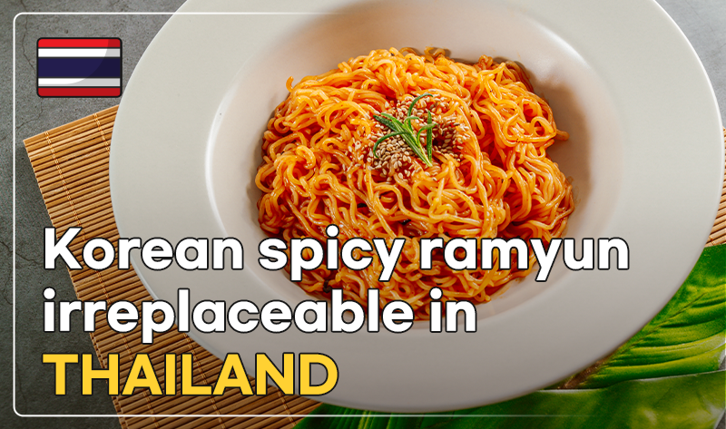Thailand is the largest Korean ramyun importer on the back of high demand for noodles. Since 2017, Korean ramyun has maintained over 70% share of the Thai imported ramyun market. As of 2022, Thailand's ramyun imports from Korea reached USD34 million (about KRW44.3 billion), accounting for 80% of the market. Major Korean ramyun products are sold for 43-55 baht (KRW1,600-KRW2,100) per pack at the country's major retailers, about six to seven times more expensive than Thai ramyun. Thai people are willing to loosen their purse strings for far more expensive Korean ramyun. In particular, ramyun with distinctive flavors, such as spicy chicken, Kimchi jjigae (stew) and jjajangmyun (a noodle dish in a black bean sauce), are highly popular. This reflects the preference of Thai people who like spicy and salty flavors.