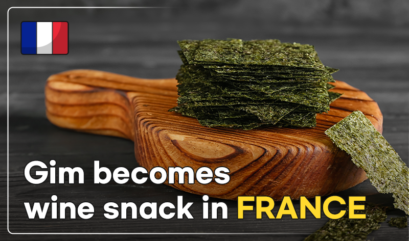 Seasoned gim and gim snacks were not mainstream foods in France. The recent popularity of gim is attributable to increasingly popular Korean content over the past few years, mostly among the young generation, and an interest in healthy foods. Compared to others, like potato chips, gim snacks have relatively fewer calories and come straight from nature. Currently, Korean products account for the largest share of the French gim snack market. Indeed, a search for gim snack products on Amazon France returns Korean brands the most. Considering that gim is consumed not as banchan (side dish) but as an aperitif pairing before a meal in France, it is worth considering localization of gim through a twist in its flavor and texture.