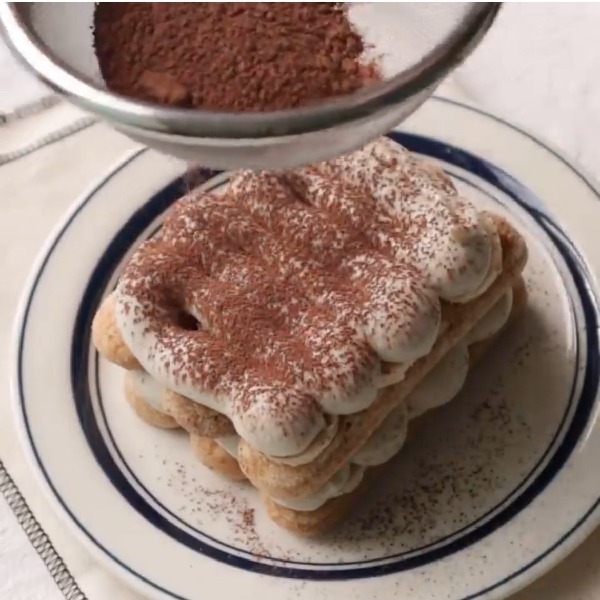 ④ Sprinkle cocoa powder on top of the cake.