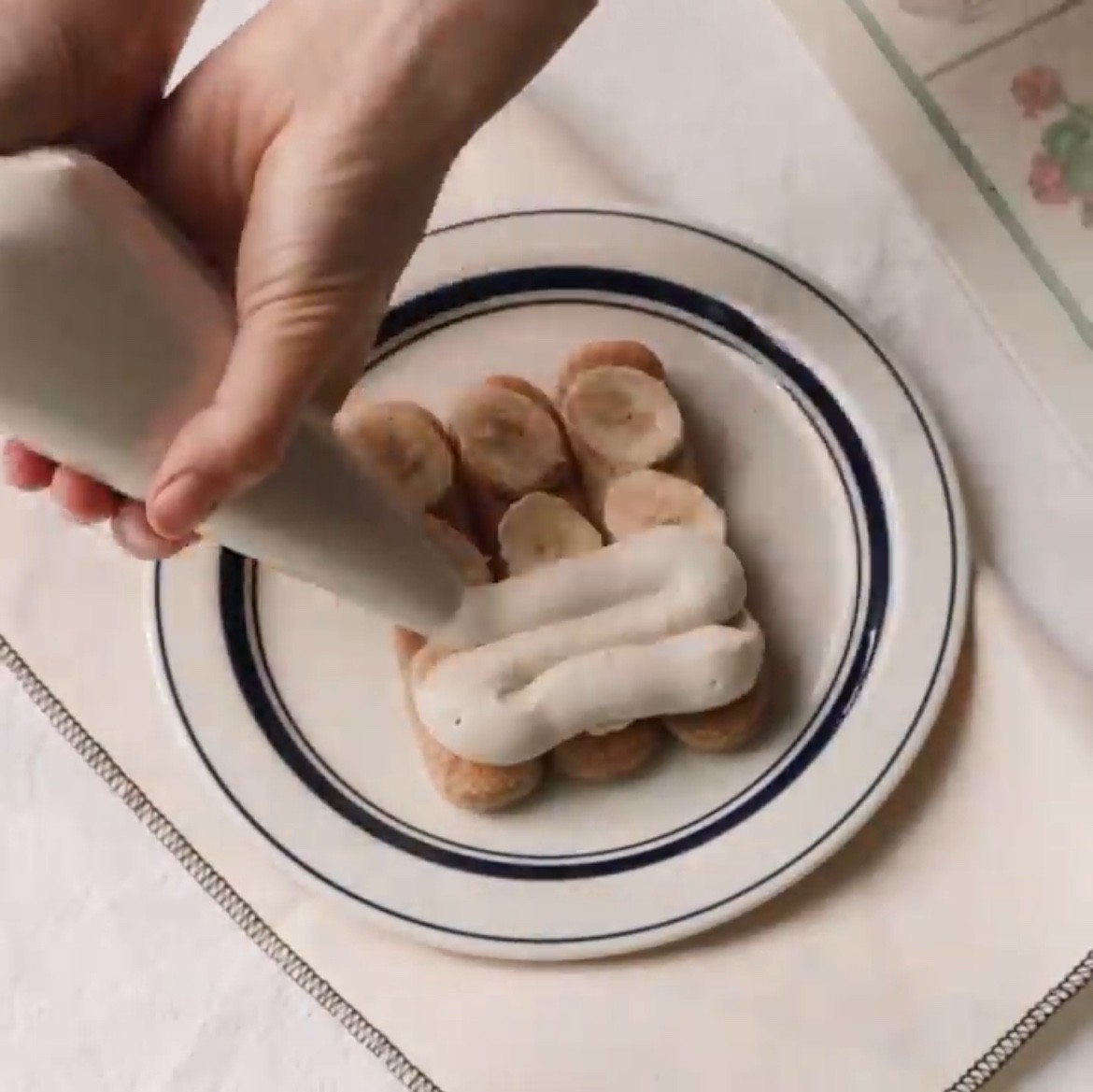 ③ Slice a banana and place it on top of the biscuits. Spread dubu cream on top of it and repeat the process.