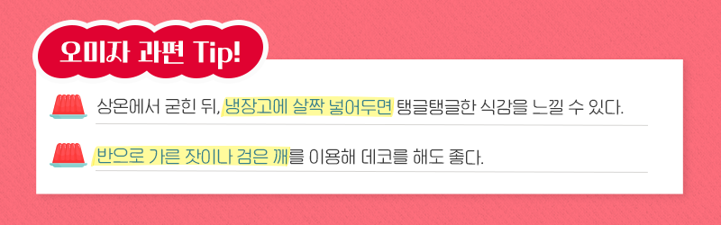 ⑤ 틀에 붓고 냉장고에서 굳힌 뒤, 적당한 크기로 잘라준다.