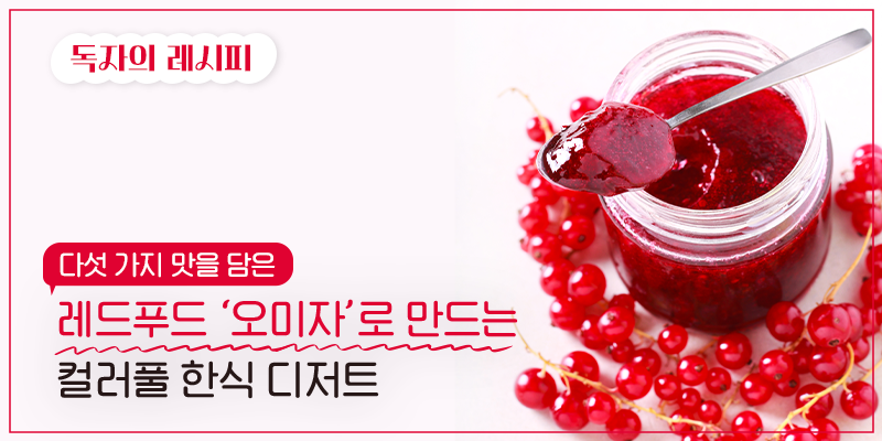 8월, 이번 호에서는 더위에 지친 일상에 활력을 불어넣어 줄 오미자 디저트를 소개한다. 단맛, 쓴맛, 신맛, 짠맛, 매운맛 등 다섯 가지 맛을 지녔다고 해서 이름 붙여진 오미자는 그 중에서도 새콤한 맛이 강하고, 붉은 보석과 같은 아름다운 색감을 지녀 우리 전통 음료나 간식에 자주 사용돼 왔다. 전통의 맛에 현대적인 감각을 더한 컬러풀 오미자 한식 디저트를 만나보자.