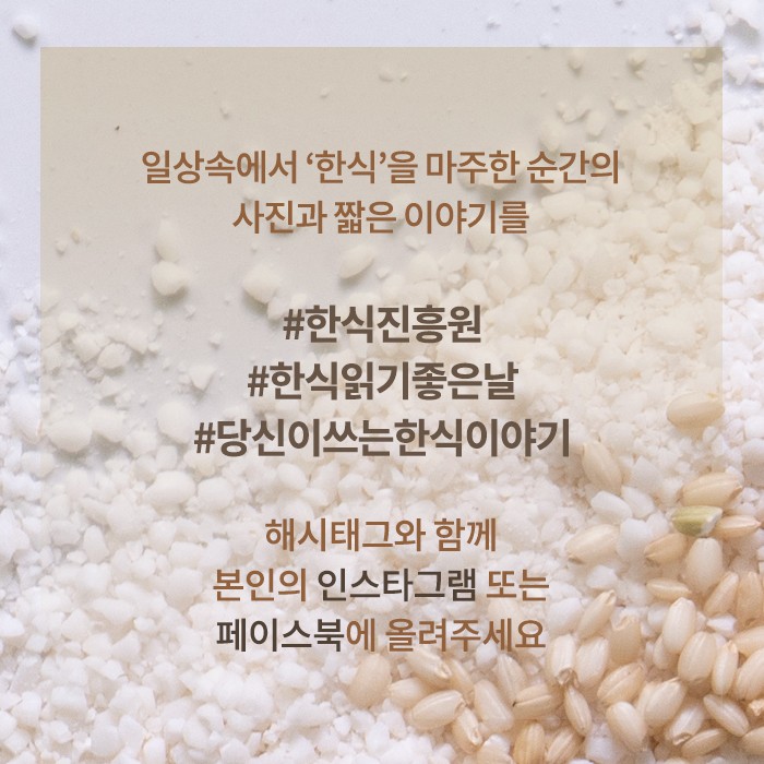 일상 속에서 “한식”을 마주한 순간의 사진과 짧은 이야기를 담아 인스타그램에 업로드! 사진은 여러 장이어도 OK!
