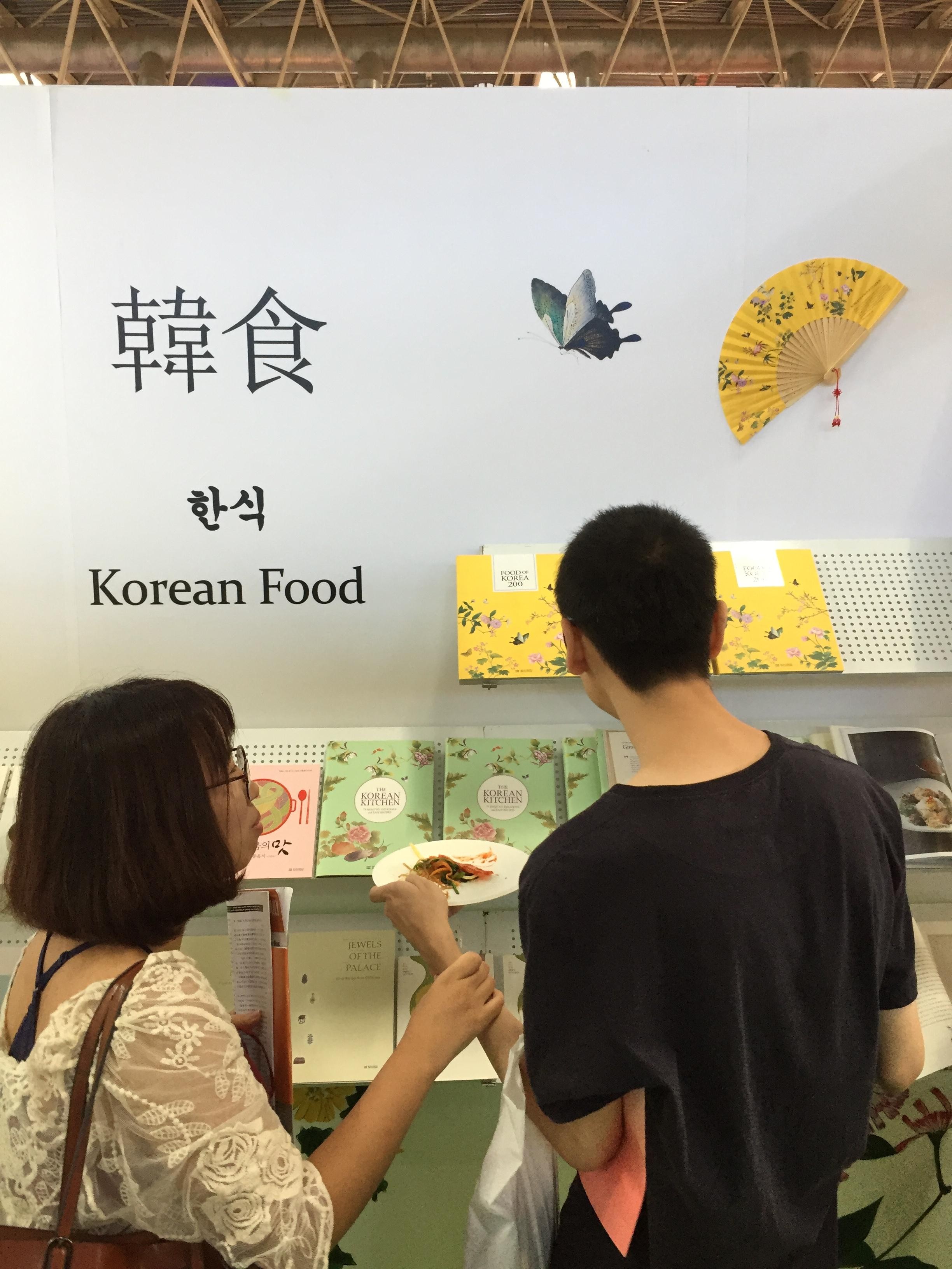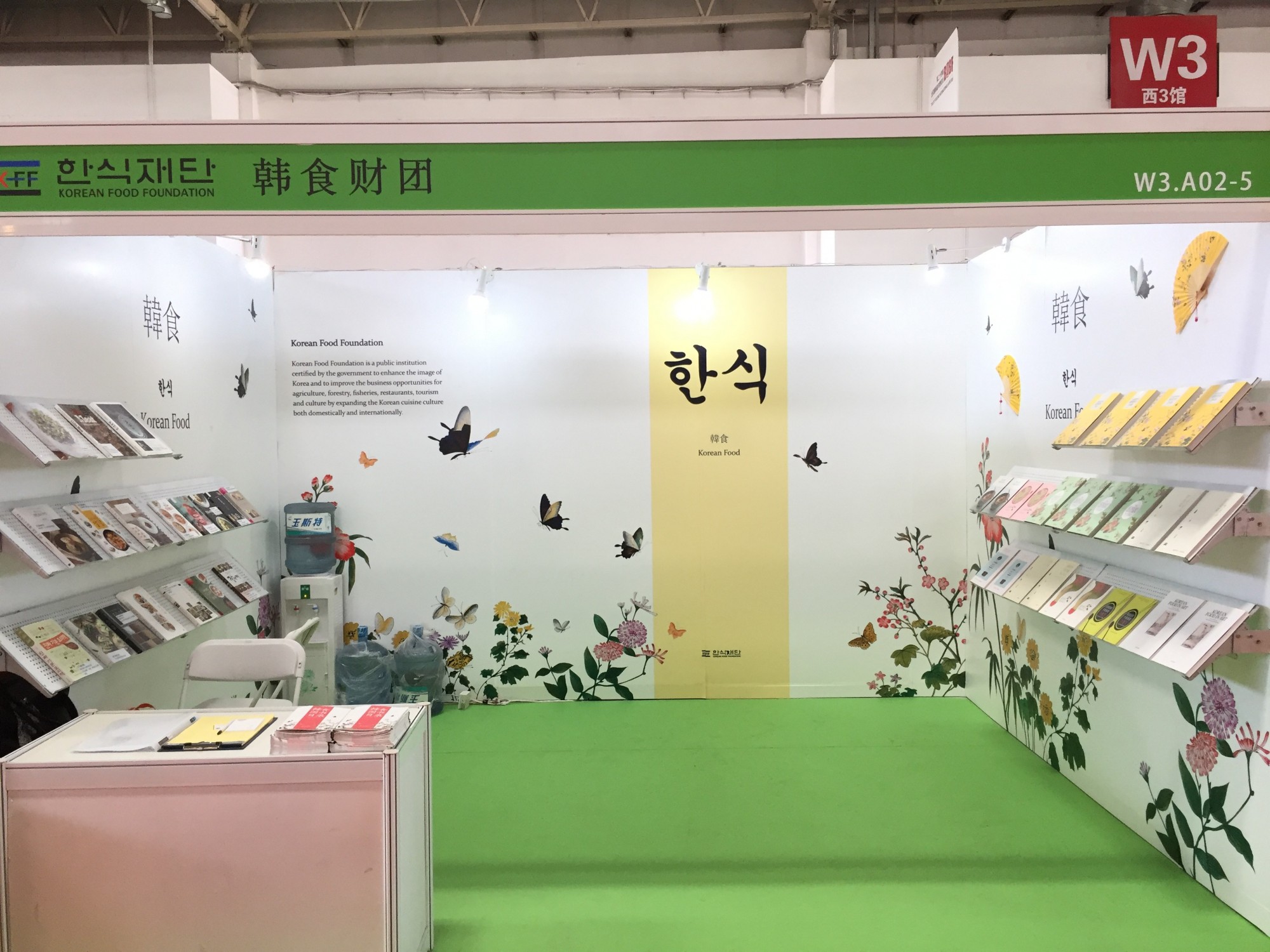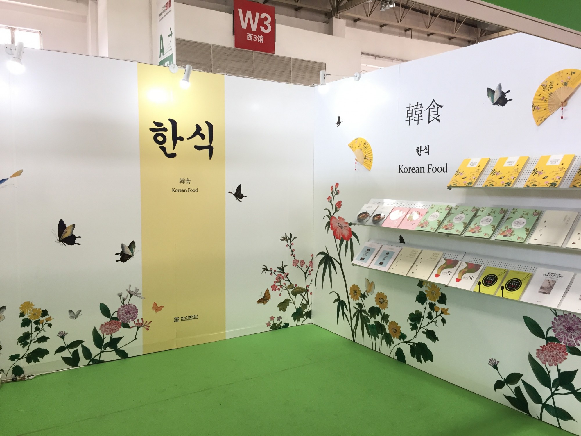 끝이 어딘지 찾을 수 없는 거대한 규모의 베이징 국제 도서전 부스를 돌아다니다 보면 낯익은 서체의 ‘한식’이라는 단어가 눈에 들어옵니다. 우리 전통 민화 속에서 쉽게 찾아 볼 수 있는 형형색색의 새초롬한 꽃 몇 송이와 밝은 컬러의 배경도 어딘지 모르게 한국적인 느낌을 줍니다.