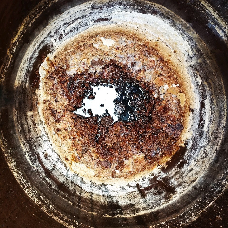 <시간이 지나면서 수분이 증발하여 소금 결정 모양으로 굳은 간장의 모습>