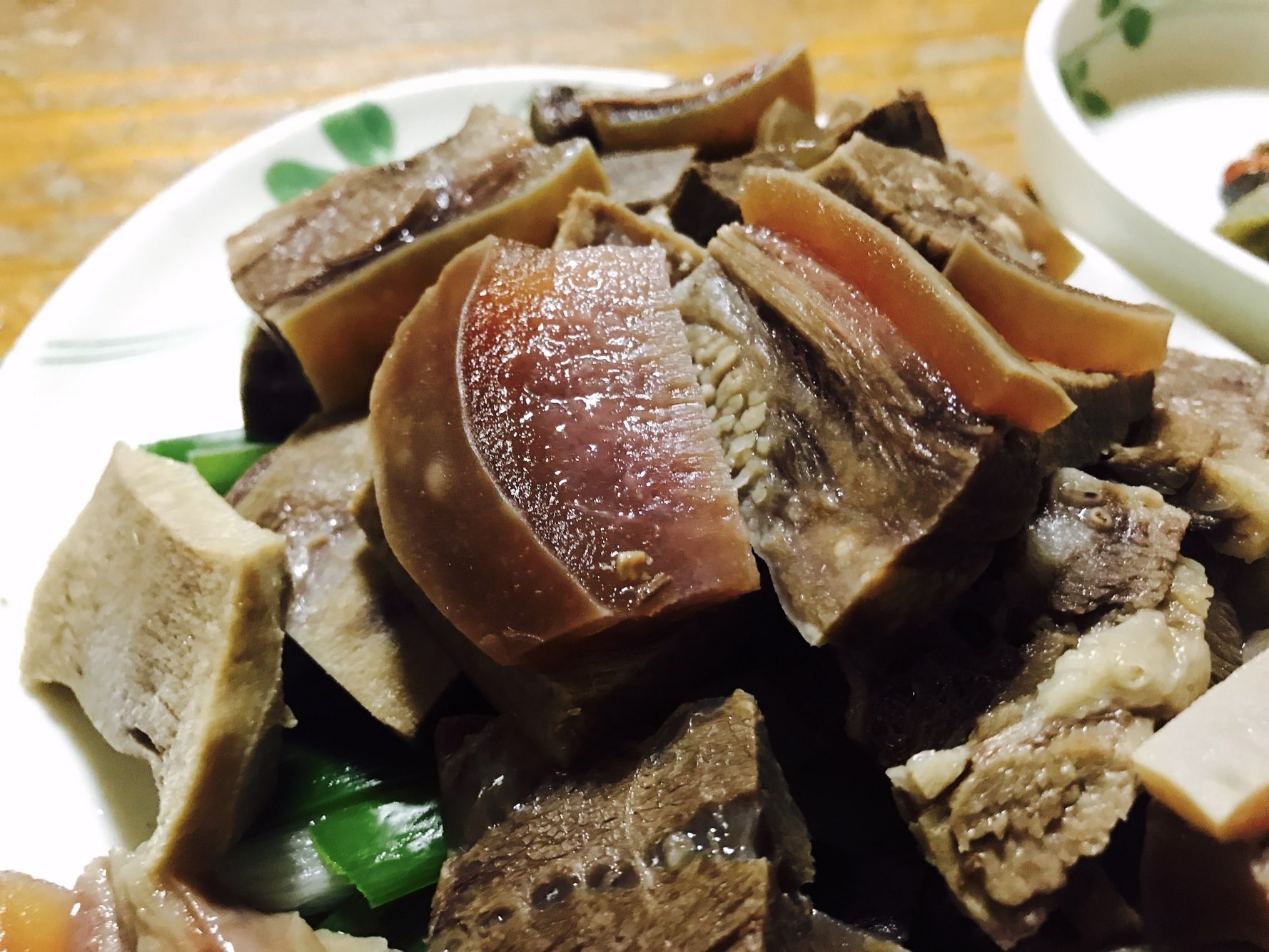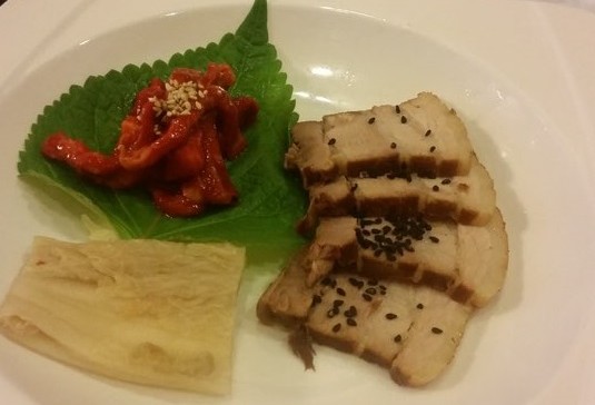 쇠고기로 만든 수육은 초간장이나 겨자 초장에 찍어 먹고, 돼지고기로 만든 것은 새우젓국을 찍어 배추김치에 싸서 먹는다. 오늘 소개하는 리정식당에서는 '쇠머리의 우설(소의 혀)과 아굿살'만으로 만든 진짜배기 '수육'을 제공한다.