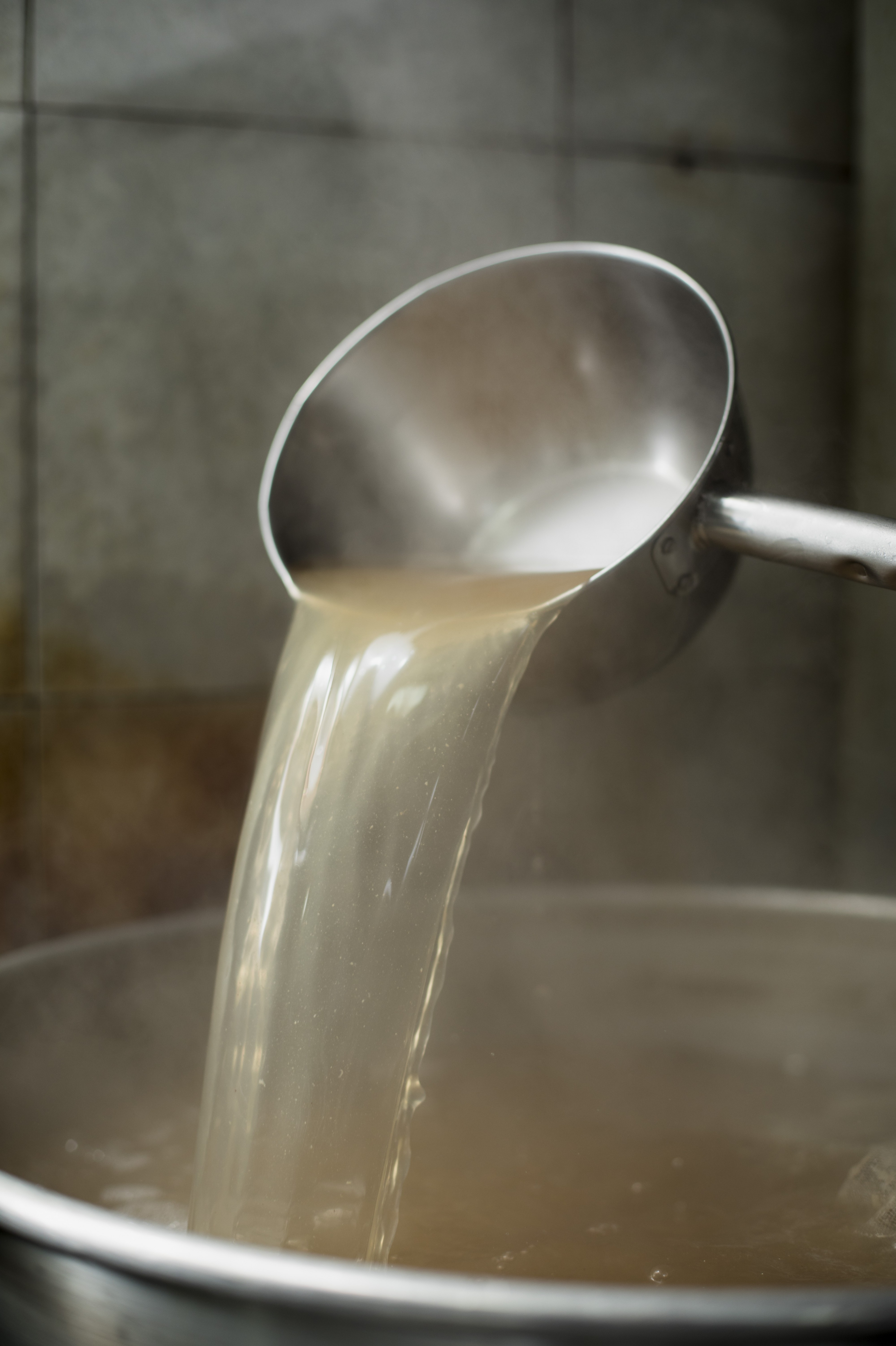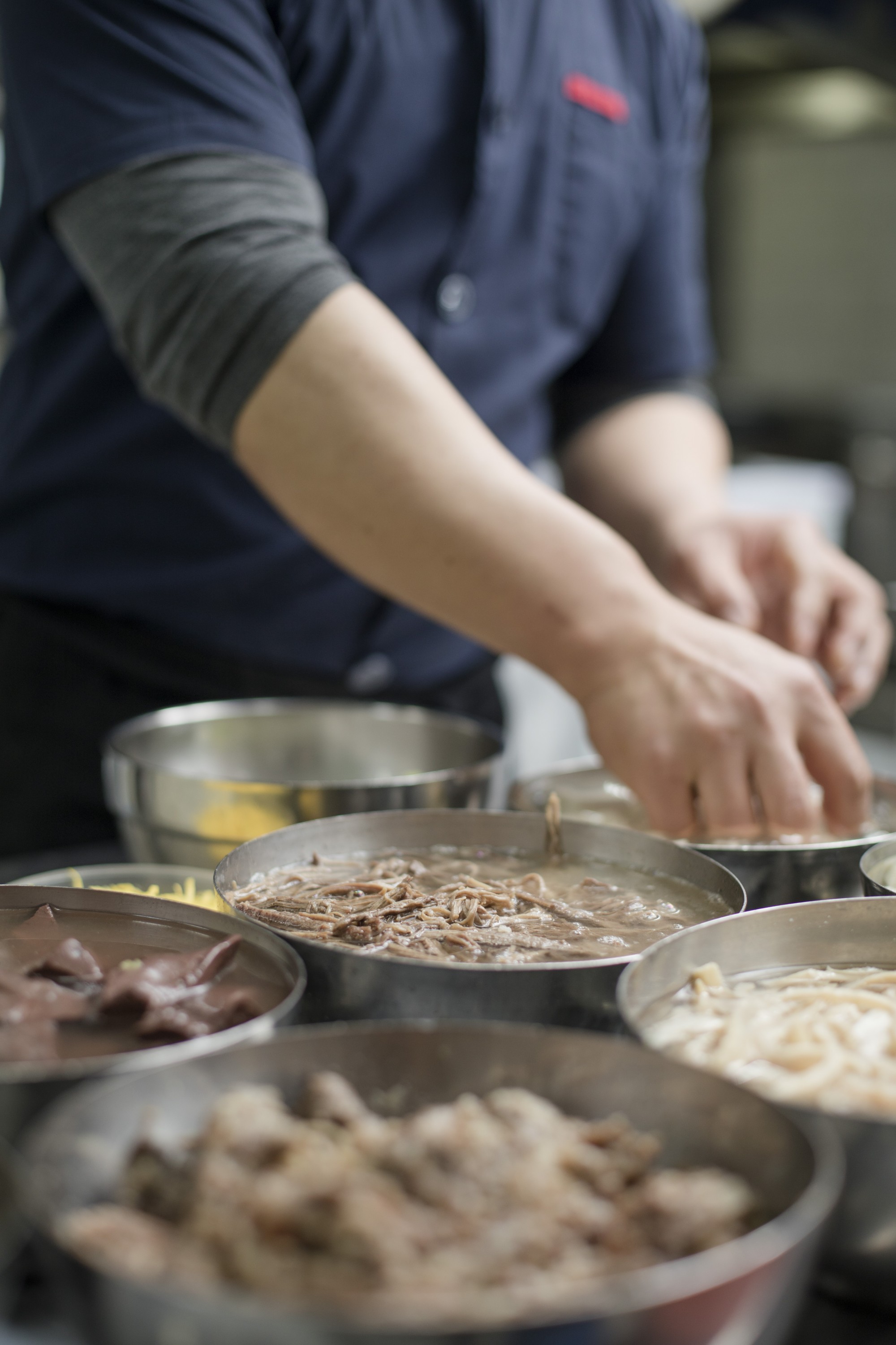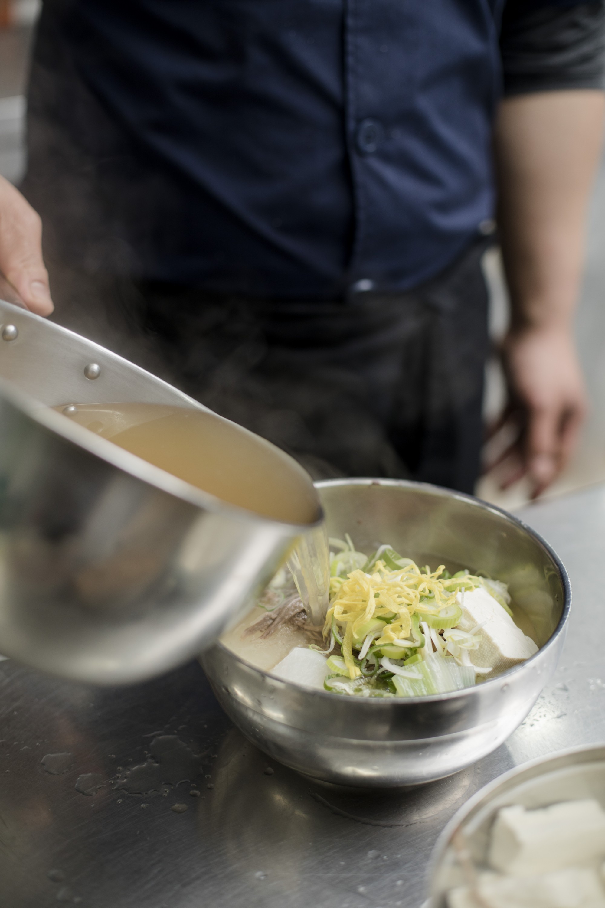 진한 육수를 내기 위해 소갈비와 양지, 설깃살을 더해 4시간 이상 끓여낸다.