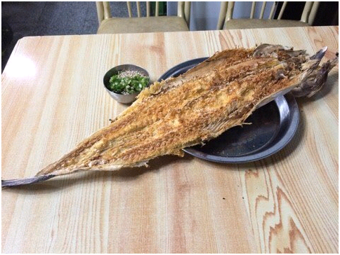 맥주 세 병을 들고 와서 마시기 시작한다. 메인 메뉴는 황태구이와 청양고추가 들어간 양념 간장. 마성의 양념 간장은 들깨와 청양고추, 물엿의 환상적인 조합이다. 황태를 계속 찍어 먹게 만드는 매콤달콤한 양념 간장은 입맛을 당기는 최고의 양념. 친구와 이야기를 나누며 황태를 슬슬 찢기 시작한다. 황태는 가게 주인장이 직접 구워주는데 맛이 아주 고소하다. 앞으로도 강원도 대관령에서 황태가 많이 만들어졌으면 좋겠다. 예전보다 명태가 잘 잡히지 않는다고 하는데 전주 가맥 마니아로서 걱정이다.