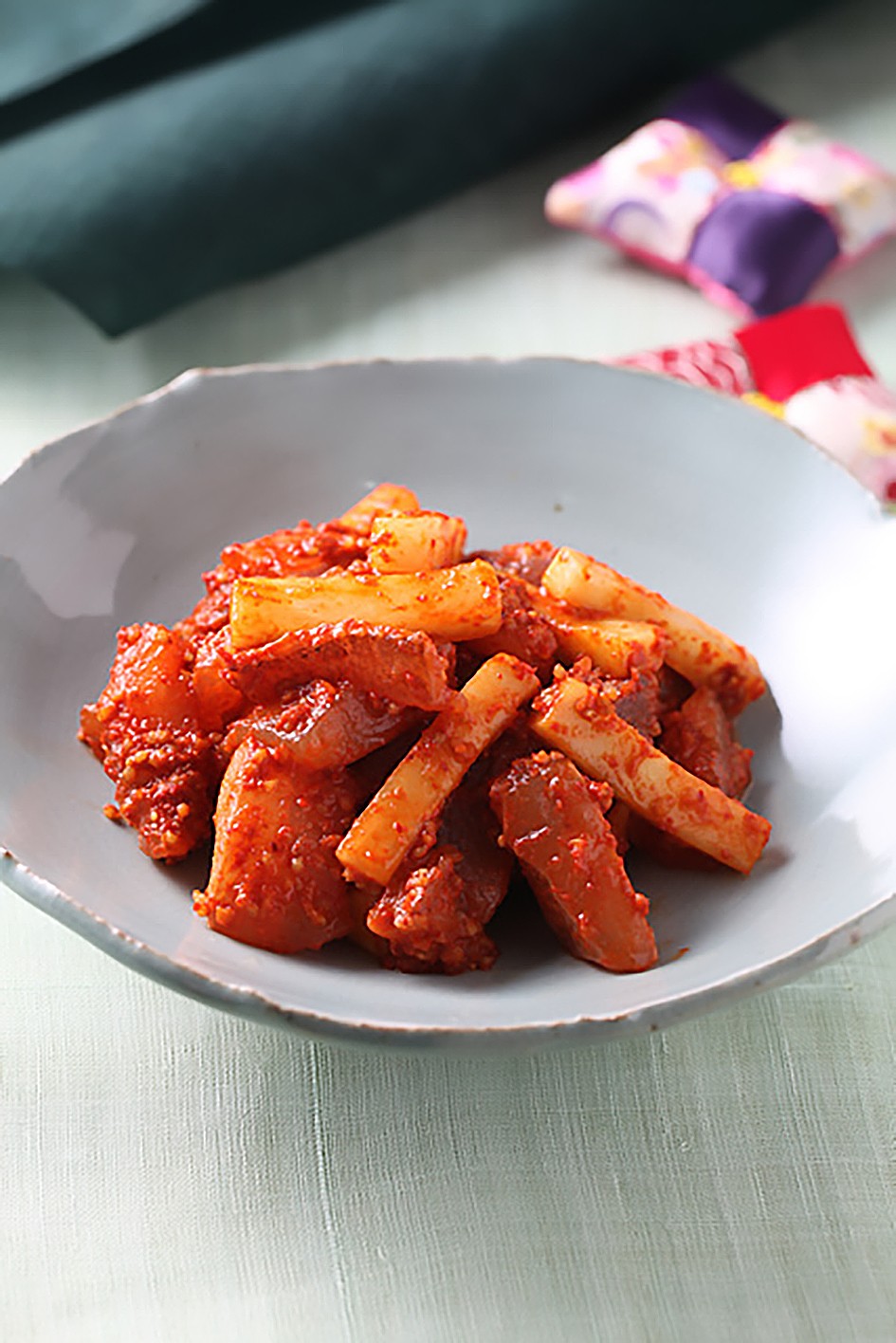 이름조차 생소한 ‘마른고기식해’는 함경도 가자미식해에 버금가는 경상도 특산물로, 슬로푸드답게 만드는 과정이 꽤 길다. 일단 깨끗이 씻은 마른 오징어나 내장을 뺀 명태를 소금물(농도 6~8%)에 18~20시간 정도 절여야 한다. 소쿠리에 건져 소금 물기를 빼고 조밥과 고춧가루, 마늘, 파 등을 고루 섞어 항아리에 담는 게 2단계. 약 20℃ 상온에 2~3주 두어 발효시키면 완성된다. 살과 뼈가 물러지면 씹을 필요 없이 술술 넘어가 밥도둑으로 등극. 생각보다 품이 많이 들어 이즈음 흔하진 않지만 한국에선 17세기 초부터 음식 문헌에 등장했다.