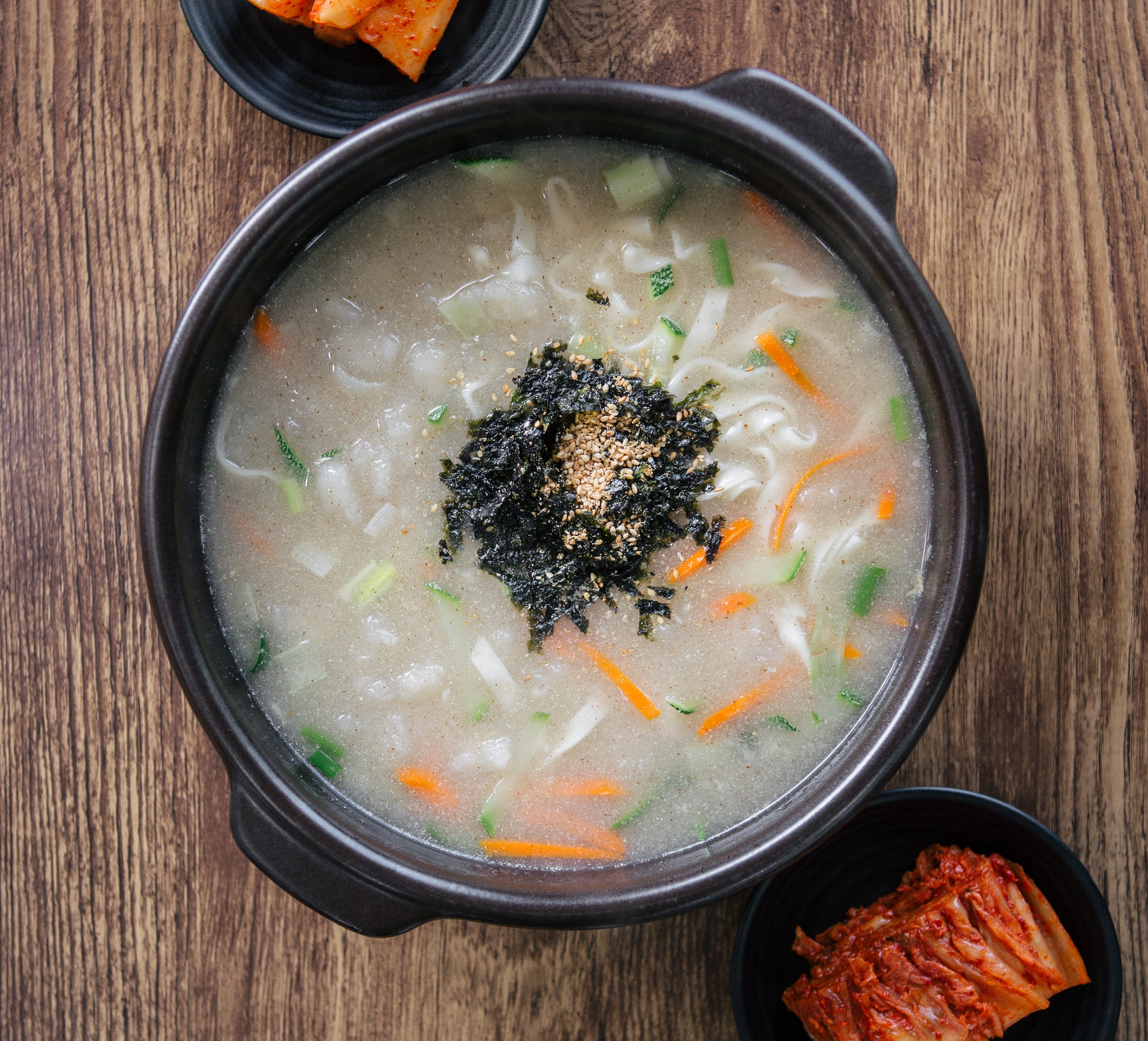 들깨 국물을 한 수저 떠 칼국수 면과 옹심이를 올리고 잘게 찢은 김치 한 점을 더하면,