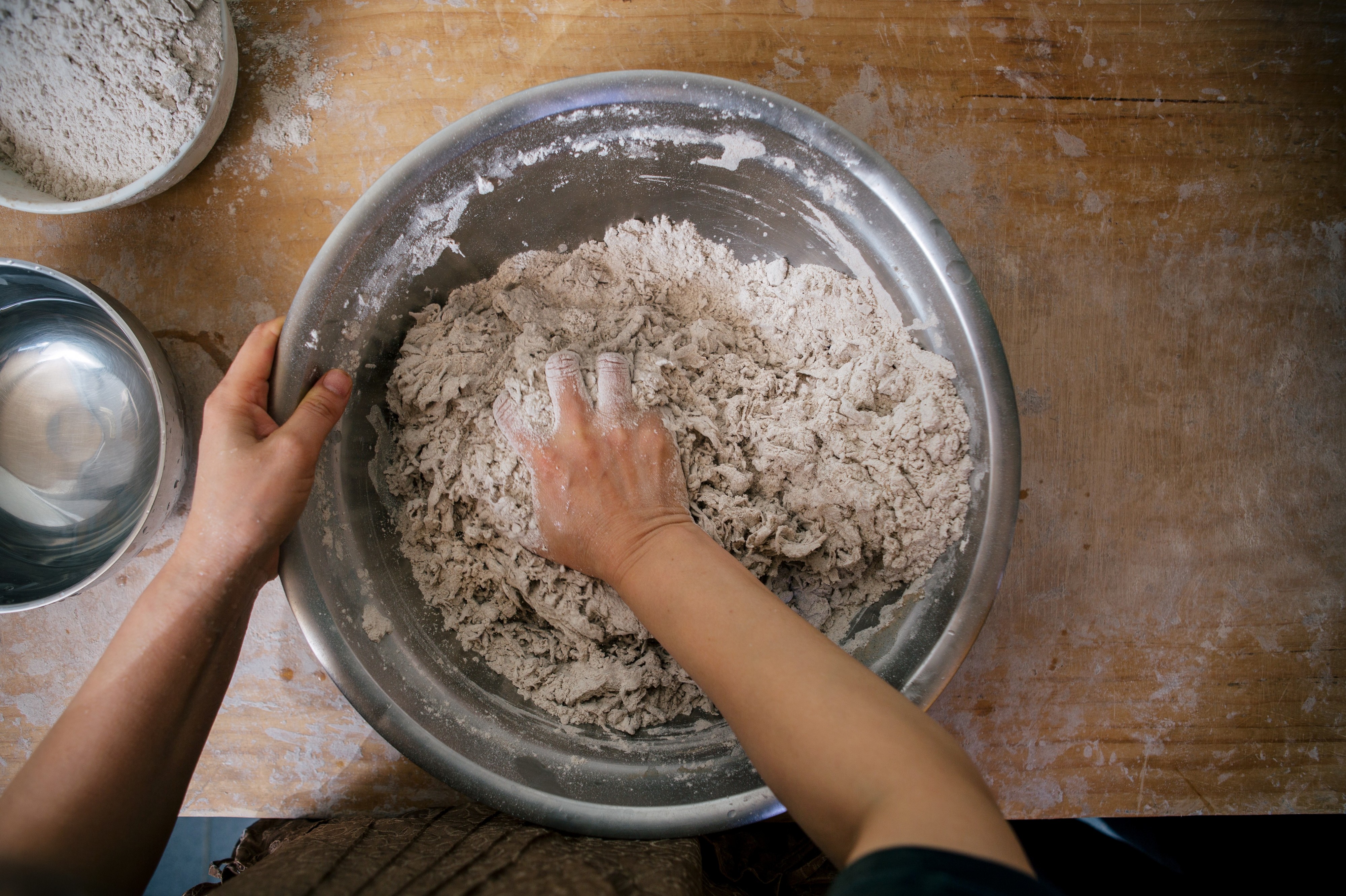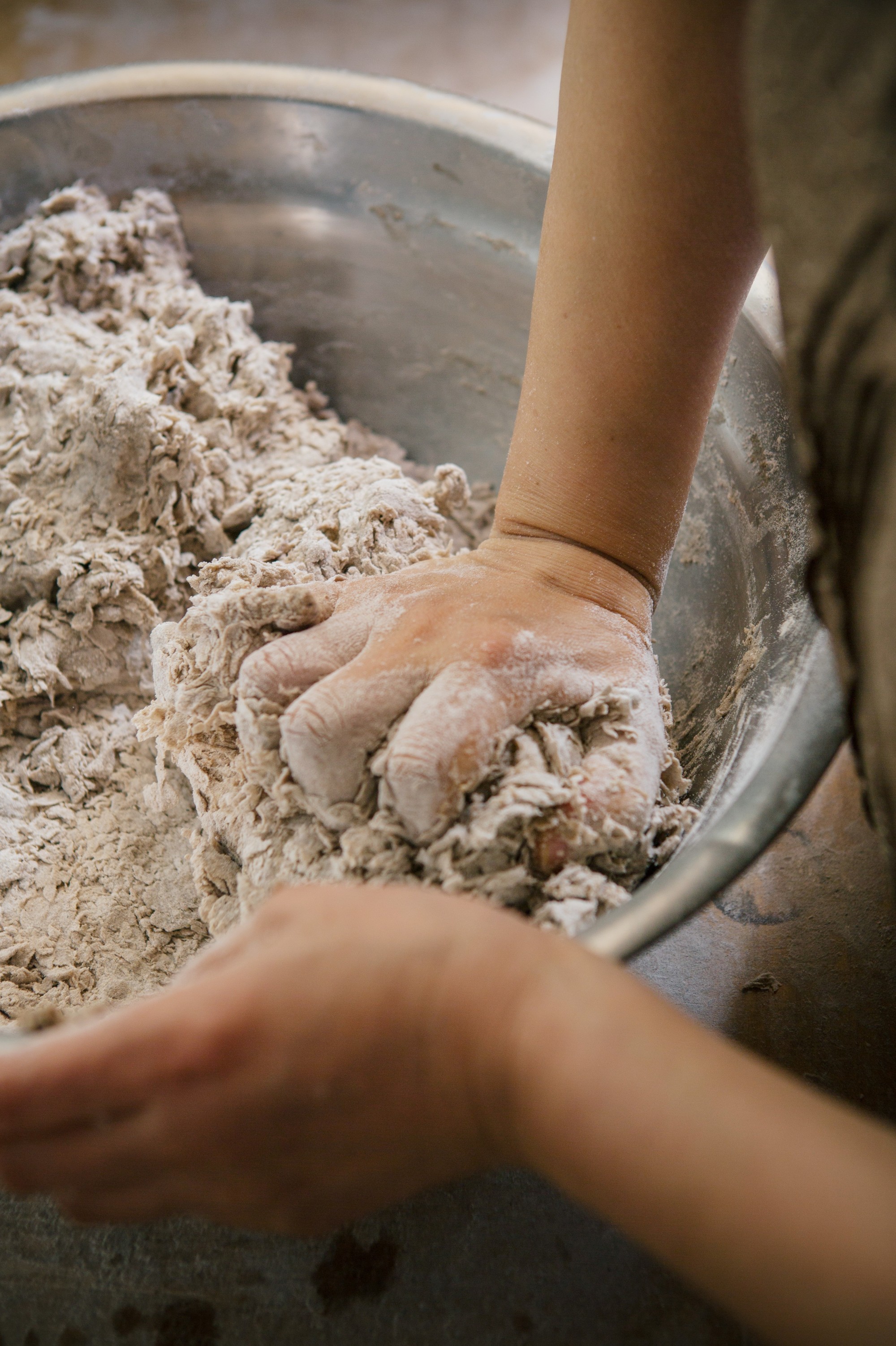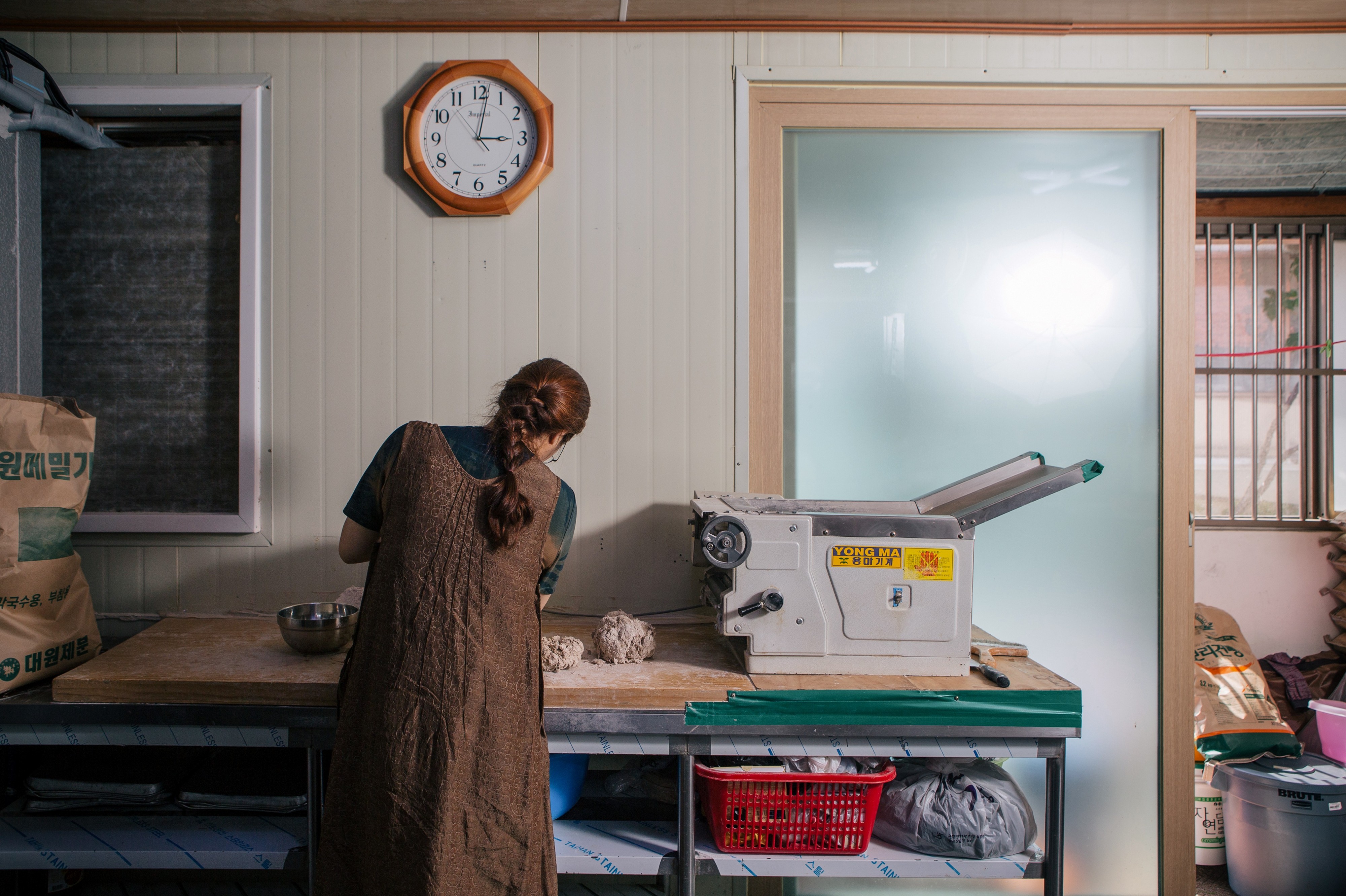 주방 한구석에 마련된 작업 공간에선 매일 아침 그날 사용할 면을 뽑아내는데, 메밀가루에 물을 조금씩 넣어가며 농도를 맞춘다. 이때 약간 질게 반죽해 부드러운 식감을 주는 것이 이상적. 손으로 계속 치대다 한 덩어리가 되면 기계로 반죽을 눌러 얇게 편다. 이 과정을 7-8번 반복하면 반죽에 점점 찰기가 생기는데, 이렇게 완성된 반죽을 다시 기계에 넣어 국수로 뽑는다.
