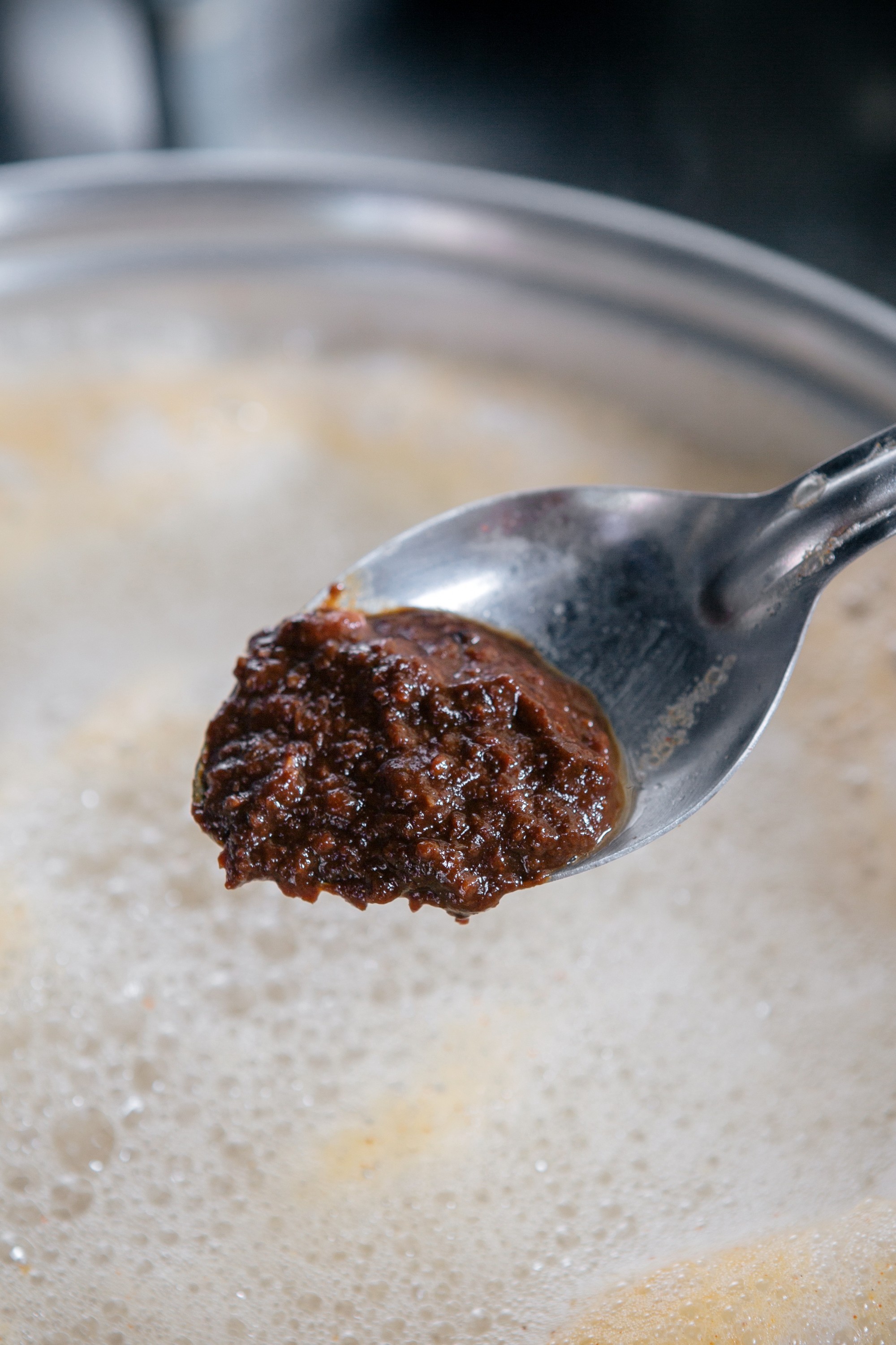 물에 된장을 풀어 된장 육수로 끓여내는게 전통 방식.