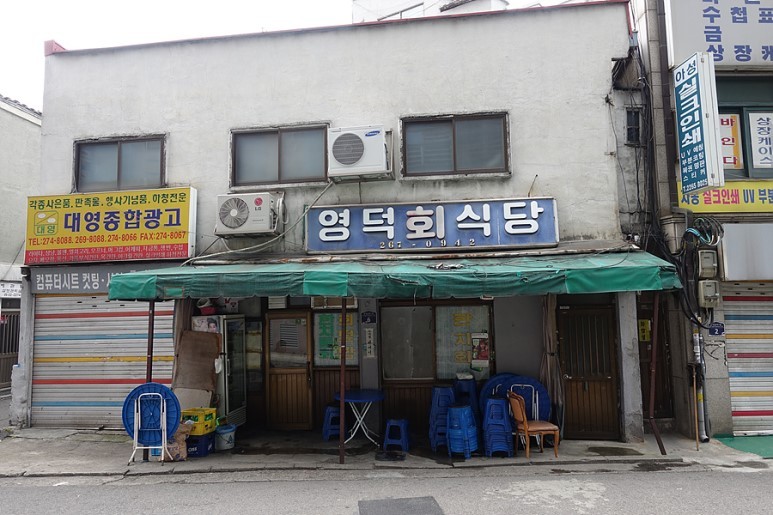 세운 상가의 끝자락 충무로에서 큰 길 하나 안 쪽, 허름한 골목. 느즈막한 밤이면 사람들이 삼삼오오 모인다. 자리는 좁은데 사람이 많아 구하기는 좀 어렵지만, 어엿하게 영업 신고까지 한 마성의 맛! 바로 영덕회식당의 ‘양념장’이다.
