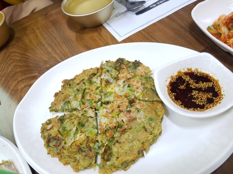 정갈한 녹두전과 들깨 칼국수, 태고면옥