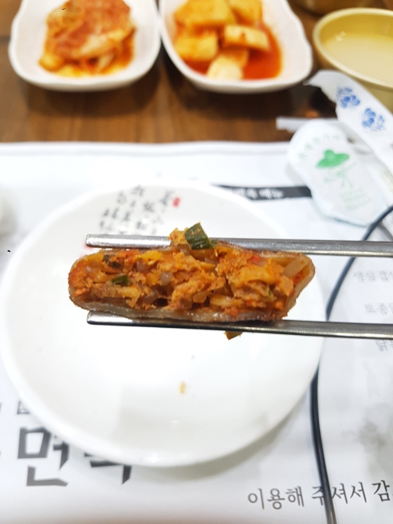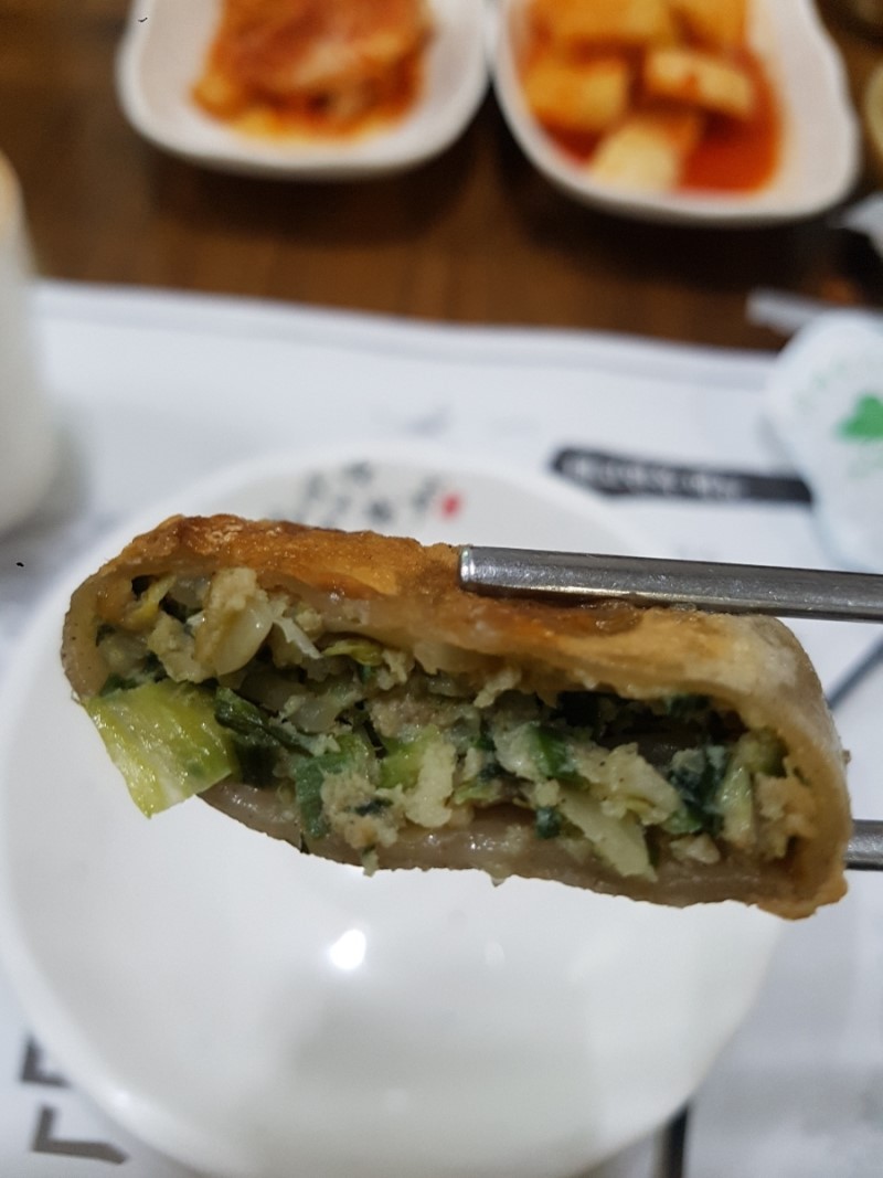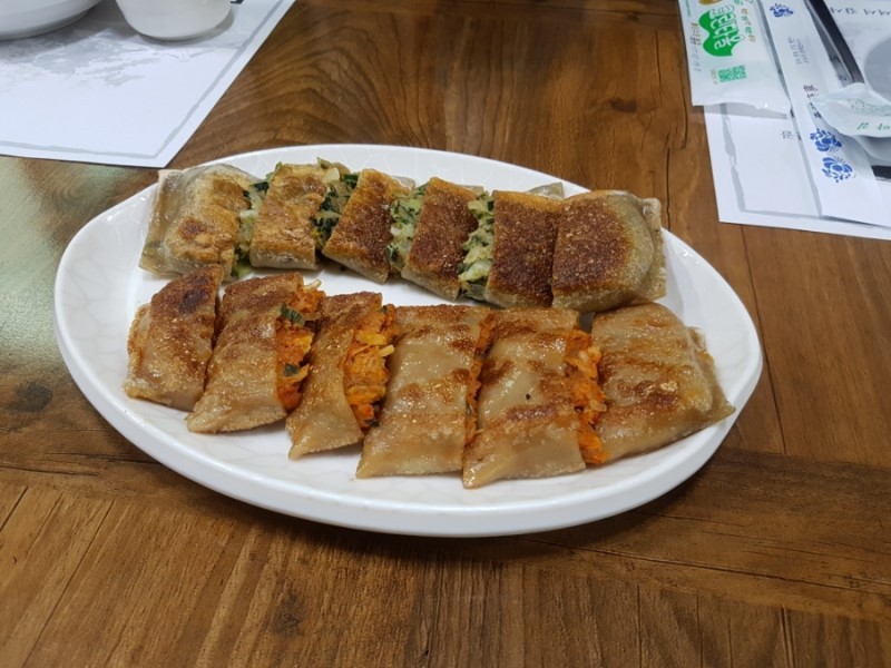 모든 메뉴가 나오기를 기다릴 수 없어서 메밀전병부터 먹었어요. 사실 너무 배고파서 허겁지겁 먹느라, 이 음식이 무슨 맛이었는지 자세히 알려드릴 수가 없네요.