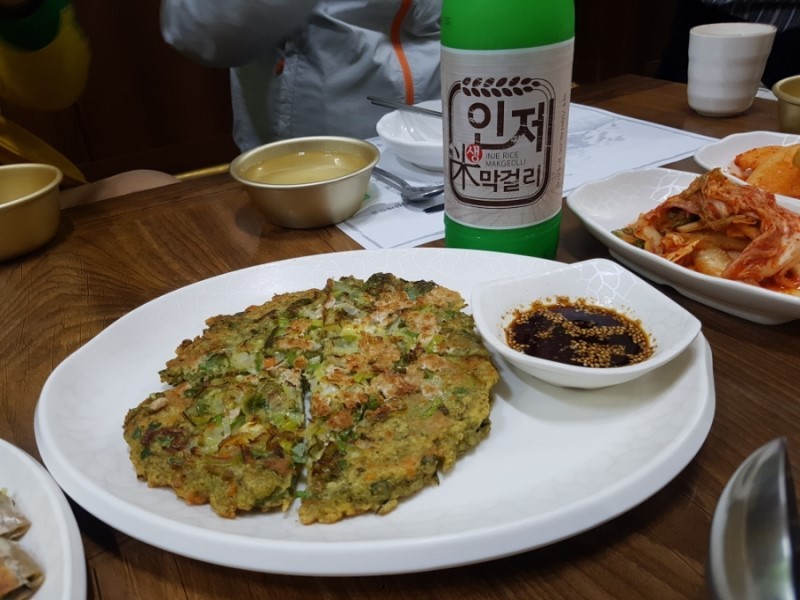 녹두전이 나왔어요! 전이 나왔다면 막걸리도 나와야죠~♡. ‘인제 막걸리’는 처음이었어요. 좋다~.